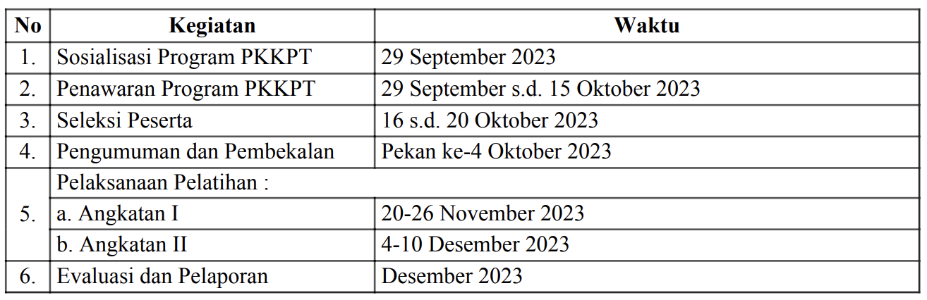 Ketentuan detail program PKKPT dapat merujuk Buku Pedoman yang terdapat pada lampiran surat ini.