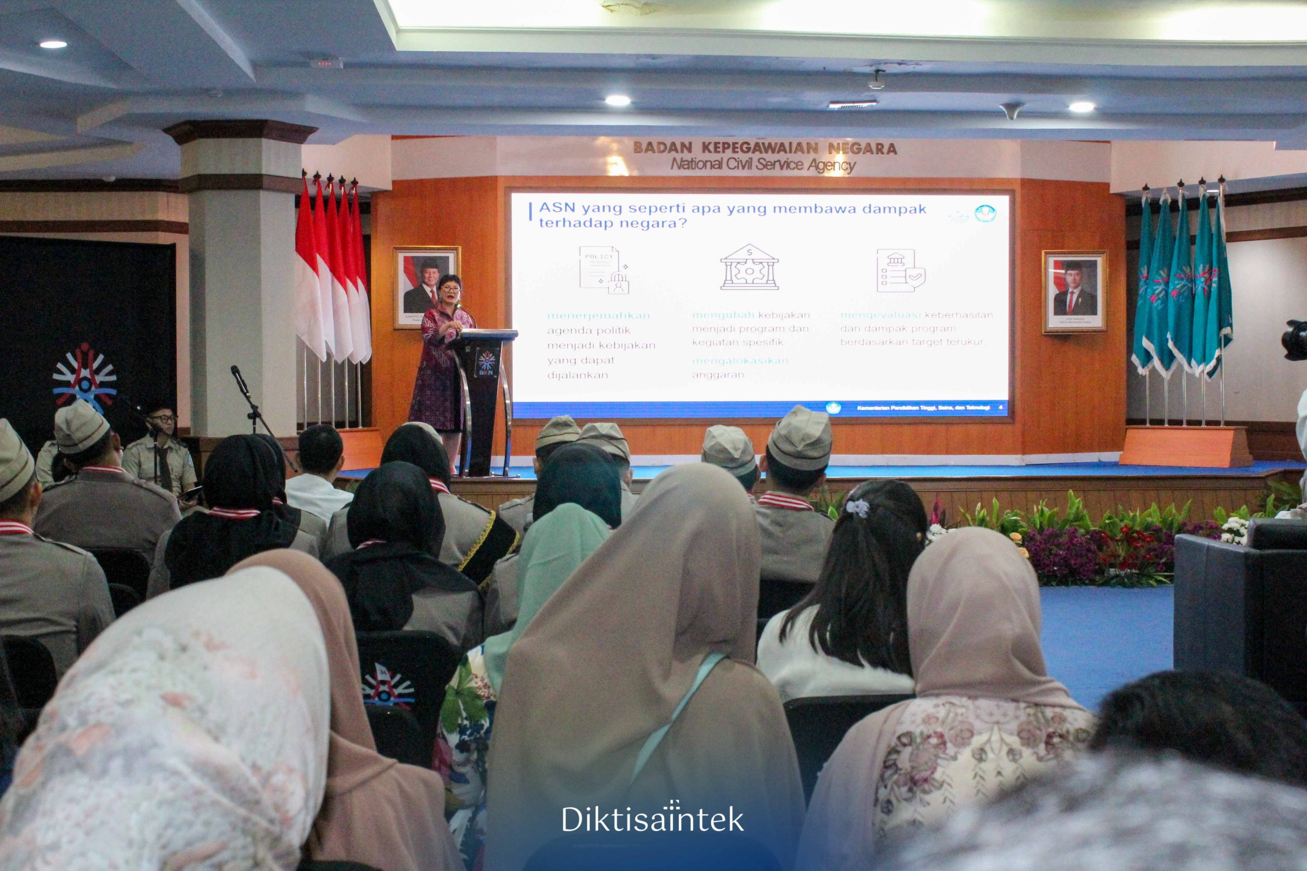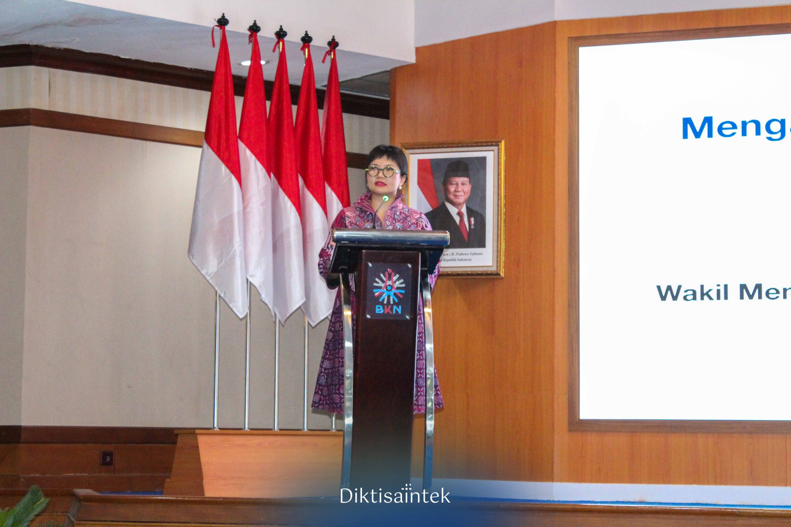 Wamendiktisaintek Stella Christie menghadiri acara Pelepasan Mahasiswa Pendidikan Ilmu Kepegawaian Badan Kepegawaian Negara di Kantor BKN Jakarta